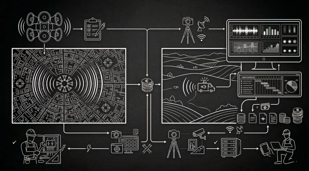 - Koncepcja rozbudowy systemu w oparciu o projekt akustyczny dostosowany do indywidualnych uwarunkowań oraz założeń programu OLiOC